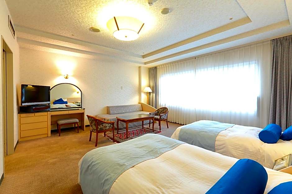 The air-conditioned twin room offers a flat-screen TV, a safe deposit box, an electric kettle, yukata as well as mountain views. The unit offers 2 beds.